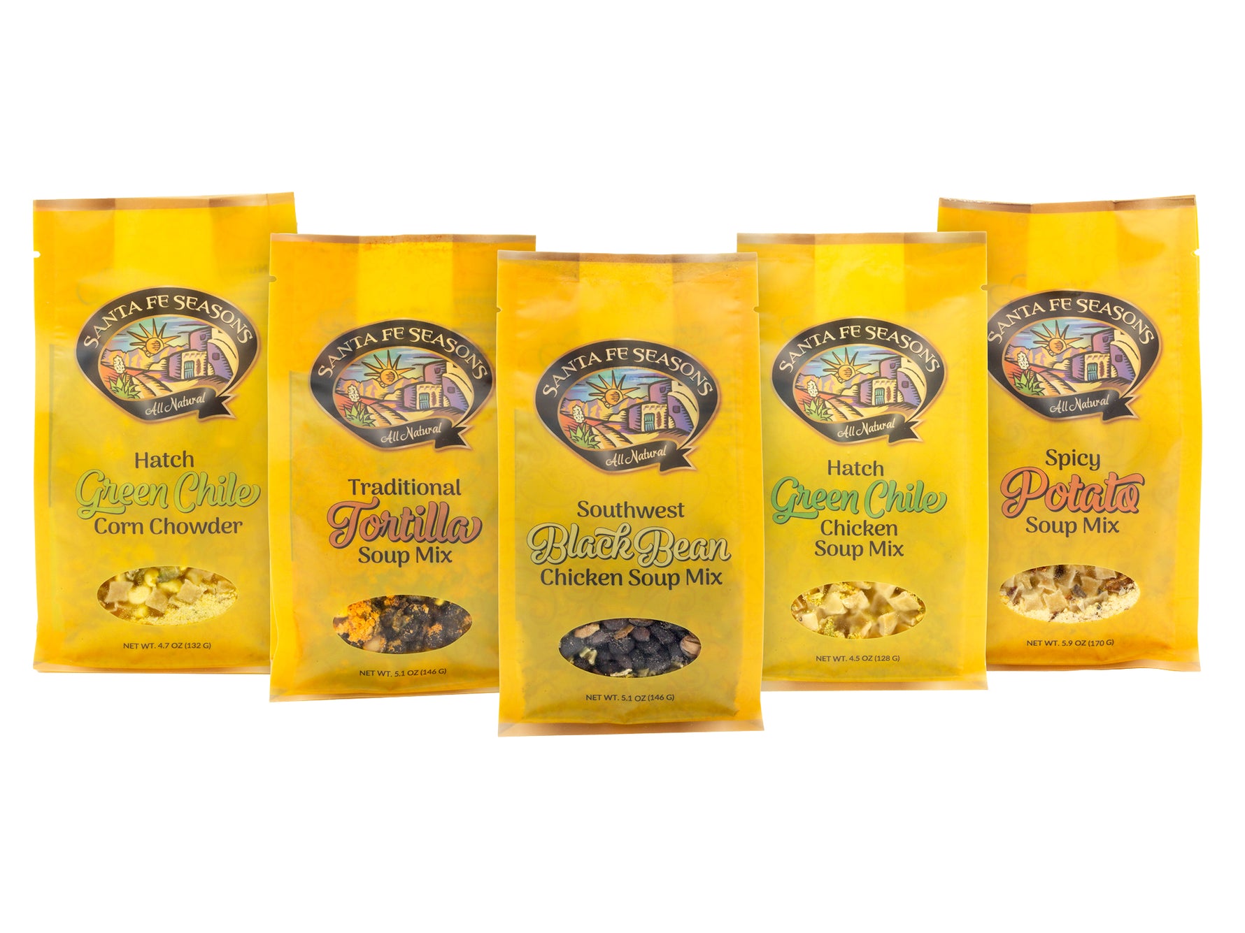 • Featuring Green Chile Corn Chowder, Green Chile Chicken, Spicy Potato, Traditional Tortilla, and Southwest Black Bean Soup Mixes.